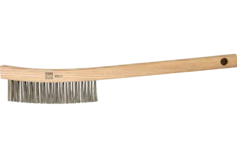 PFERD 85004 Curved Handle Scratch Brush 3x19 Rows Stainless Steel Wire Wooden Block