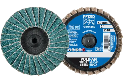 PFERD 42924 Mini Flap Disc, 2" Dia, Type CDR, 40 Grit, Flat, Zirconia alumina