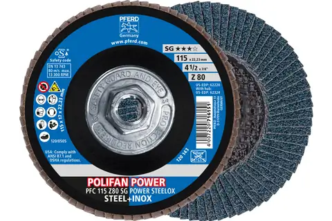 PFERD 62220 Flap Disc, 4-1/2" x 7/8, Z SG POWER STEELOX, 80 Grit, T29, Conical, Zirconia