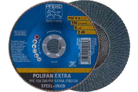 PFERD 60640 Flap Disc, 6" x 7/8, Z PSF EXTRA STEELOX, 40 Grit, T29, Conical, Zirconia