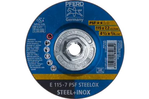 PFERD 61002 Grinding Wheel, 4-1/2" x 1/4 x 7/8, PSF STEELOX, T27, Aluminum oxide