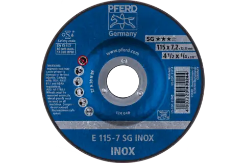 PFERD 61105 Grinding Wheel, 4-1/2" x 1/4 x 7/8, SG INOX, T27, Aluminum oxide
