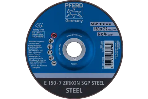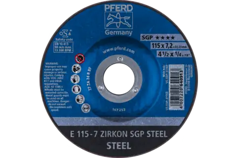 PFERD 61553 Grinding Wheel, 4-1/2" x 1/4 x 7/8, SGP ZIRKON STEEL, T27, AO, SiC