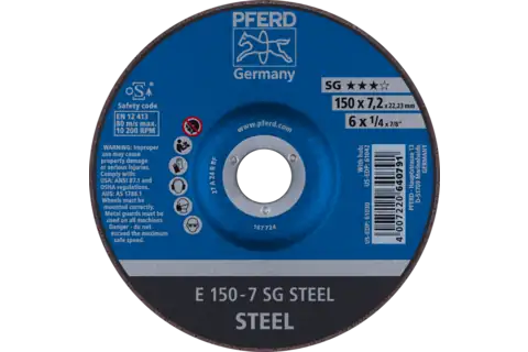 PFERD 61030 Grinding Wheel, 6" x 1/4 x 7/8, SG STEEL, T27, Aluminum oxide