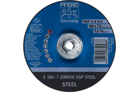 PFERD 61563 Grinding Wheel, 7" x 1/4 x 5/8-11, SGP ZIRKON STEEL, T27, AO, SiC