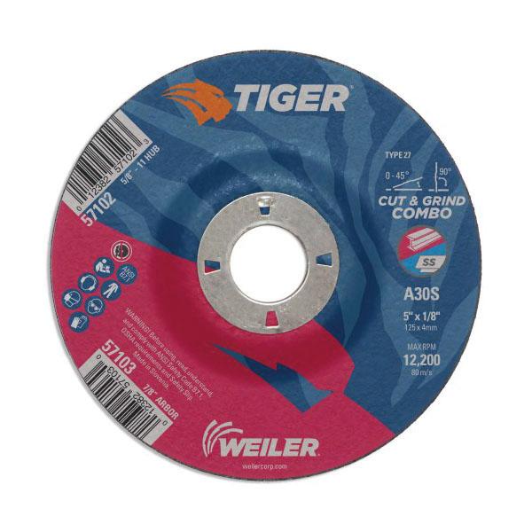 Tiger 57101 Long Life Performance Line Depressed Center Combo Wheel, 4-1/2 in Dia x 1/8 in THK, 7/8 in Center Hole, 30 Grit, Premium Aluminum Oxide Abrasive