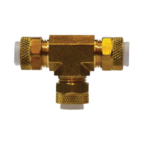 Tube Union Tee, Tee, 3/8 in Nominal, Poly-Flo Flareless, 0 to 150 psi, 0 to 150 deg F, CA360 Brass