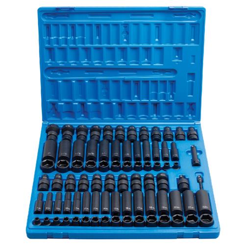 GP Socket Set, Deep Length Standard, Yes Impact Rated, Measurement System: Metric/Imperial, 81 Piece, 6 Points, Included Socket: 5/16 to 1 in, 7 to 22 mm, 3/8 in Drive, Molded Storage Case Container