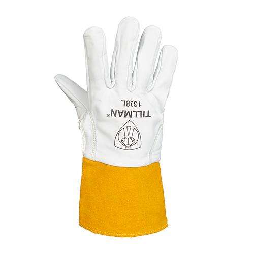 Tillman TIG Welding Gloves, Standard, Series: 1338, XL Size, Top Grain Goat Skin Leather Palm, Top Grain Goat Skin Leather, White, Reinforced Straight Thumb Style, Kevlar Lining, Resists: Abrasion and Heat