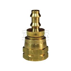 Dixon Hose Barb Fitting, Fitting/Connector Type: Adapter, 1-1/16-14 x 3/4 in Nominal, 45 deg Female SAE Swivel x Push-On Hose Barb End Style, 1-1/4 in Hex, 2.54 in Length, 3 Barb, 1-1/2 in Barb Length, 350 psi Pressure, -40 to 212 deg F, Brass