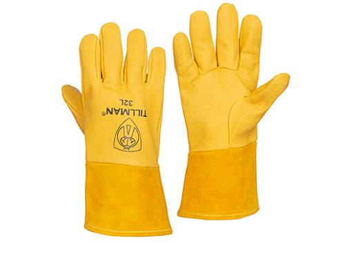 Tillman TIG Welding Gloves, Premium Grade, Series: 32 Series, XL Size, Top Grain Pig Skin Leather, Gold, Straight Thumb Style, Unlined Lining, Gauntlet Cuff, 9 to 10 in Length, Resists: Oil and Wet