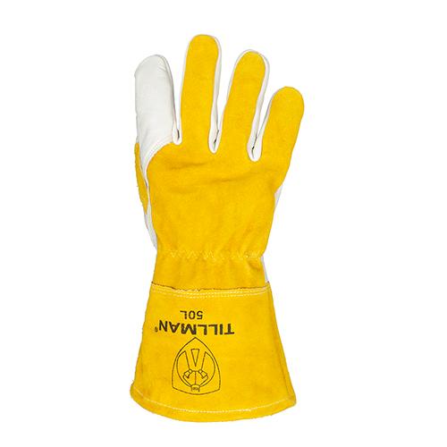 Tillman MIG Welding Gloves, Premium Grade, Series: 50 Series, XL Size, Cowhide Leather Palm, Split Cowhide Leather Back/Kevlar Stitching/Split Cowhide Leather Cuff, Pearl, Wing Thumb Style, Fleece Lining, Gauntlet Cuff, 14 in Length, Resists: Heat