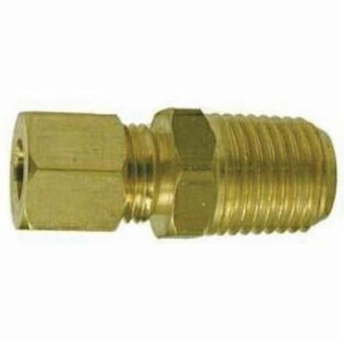 MMM Tube-to-Pipe Adapter, Adapter, 1/2 x 3/8 in Nominal, Compression x MNPTF, 0.69 in Hex, 200 psi, -65 to 250 deg F, Brass, Import