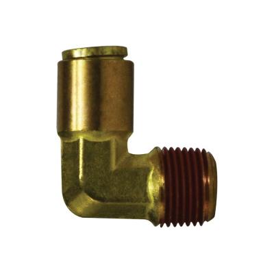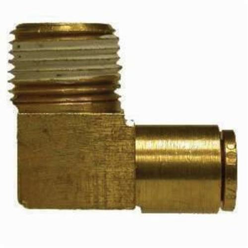 Tube To Pipe Elbow, 90 deg, 90 deg Elbow Fitting/Connector, 3/8 in Nominal, Push-In x MNPTF End Style, 150 psi Pressure, -40 to 200 deg F, CA377 Brass, Forged Method of Manufacture