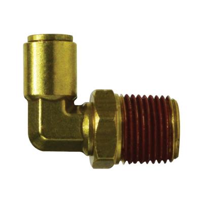Tube To Pipe Swivel Elbow, 90 deg, 90 deg Elbow Fitting/Connector, 3/8 in Nominal, Push-In x MNPTF End Style, 150 psi Pressure, -40 to 200 deg F, CA377 Brass, Forged Method of Manufacture