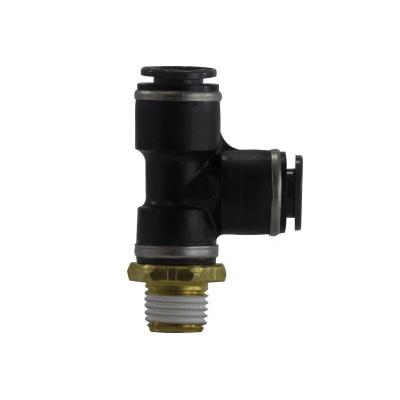 Tube to Pipe Run Tee, Air-Brake Fixed, Fitting/Connector Type: Tee, 3/8 in x 1/4-18 Nominal, Push-In x MNPT, 145 psi, -40 to 140 deg F, Brass/PBT