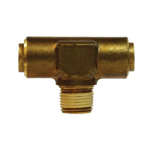Tube To Pipe Branch Tee, Tee Fitting/Connector, 3/8 in Nominal, Push-In x Push-In x MNPTF End Style, 2.28 in Length, 150 psi Pressure, -40 to 200 deg F, CA377 Brass, Forged Method of Manufacture