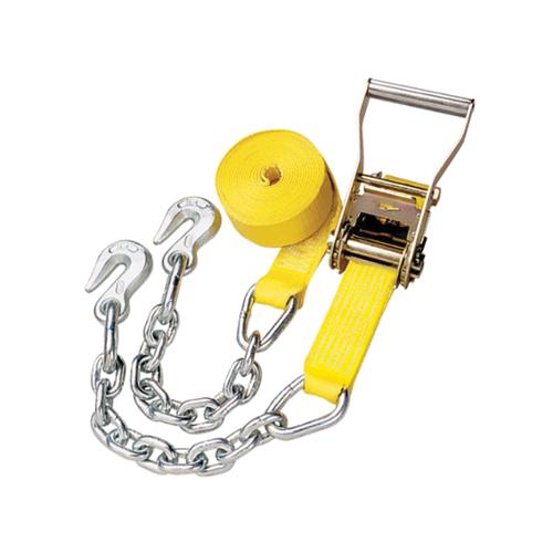 Home Lifting & Rigging Straps & Tie Downs Tiedowns Peerless CC2557 Inline Handle Ratchet Strap With Chain and Hook, 27 ft L x 2 in W, 3333 lb Load, Polyester...