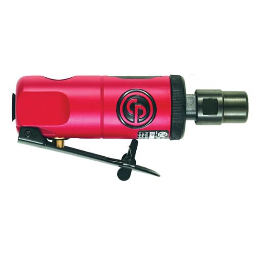Chicago Pneumatic Mini Die Grinder, Tool/Kit: Bare Tool, 1/4 in Collet, 30000 rpm, 0.3 hp, 12 to 23.956 cfm, 1/4 in Air Inlet, Front Exhaust Location, Lever Throttle, 3/8 in Minimum Hose Size, 112.3 dBA Power/101.3 dBA Pressure, 4-3/4 in L