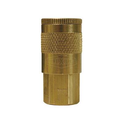 Dixon Female Quick Connect Coupler, Tru-Flate Air Chief Automotive, 1/4-18 Nominal, Quick Connect Coupler x NPTF End Style, 3/4 in Hex, 2.04 in Length, 300 psi Pressure, -40 to 250 deg F, Brass, 0.88 in OD, Domestic