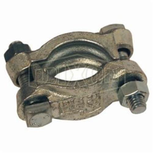 Dixon 2-Bolt Clamp, 1-12/64 to 1-24/64 in Nominal, 2-1/2 in Length, 2-5/8 in Width, 21 ft-lb, Iron Band, Zinc Plated, Domestic