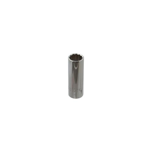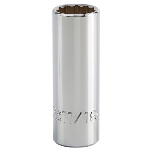 Proto TorquePlus Socket, Deep Length, No Impact Rated, Measurement System: Imperial, Square Drive, 3/8 in Drive, 11/16 in Socket, 2-3/4 in Overall Length, 43/64 in Opening Depth, 15/16 in Drive End Width, 15/16 in Socket End Width, Ball Locking, 12 Points, 2-5/16 in Bolt Clearance Depth, Alloy Steel, Full Polished