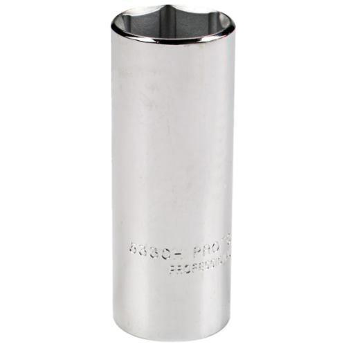 Proto TorquePlus Socket, Deep Length, No Impact Rated, Measurement System: Imperial, Square Drive, 1/2 in Drive, 9/16 in Socket, 3-1/4 in Overall Length, 15/16 in Opening Depth, 27/32 in Drive End Width, 13/16 in Socket End Width, Ball Locking, 6 Points, 2-39/64 in Bolt Clearance Depth, Alloy Steel, Full Polished