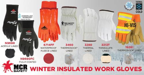 MCR Safety General Purpose Gloves, Dipped Insulated, Series: Ninja N9690, Coated Glove, L, HPT Palm, 15 ga Acrylic/Nylon, Black, Standard Finger, Acrylic, Knit Wrist Cuff, HPT, Coating Coverage: Fingers and Palm, 10.228 in Length, Resists: Abrasion, Cut, Puncture and Tear