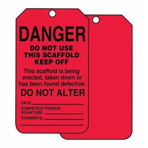 Accuform Scaffold Status Safety Tag, DANGER DO NOT USE THIS SCAFFOLD KEEP OFF to THIS SCAFFOLD IS BEING ERECTED, TAKEN DOWN OR HAS BEEN FOUND DEFECTIVE Legend, Black/Red, 5-3/4 in Height, 3-1/4 in Width, Cardstock, 3/8 in, Reinforced Metal Grommet