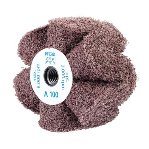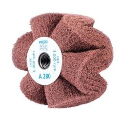 POLINOX® unmounted flap wheels are made of non-woven polyamide abrasive, into which abrasive grain is integrated. The non-woven abrasive material is arranged in multiple radial flaps, with abrasive cloth interlayers. This flap structure improves stock removal and achieves a coarser surface finish. The product is designed for working on medium-sized surfaces with speed-adjustable angle grinders and fillet weld grinders, and can be mounted directly onto the drive system's spindle without the need for additional clamping devices.