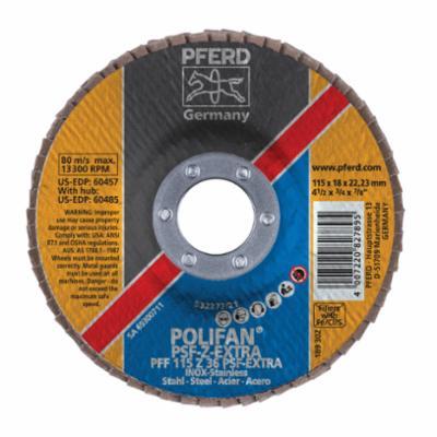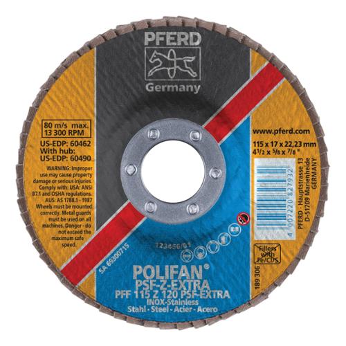 PFERD 60462 Flap Disc, 4-1/2" x 7/8, Z PSF EXTRA STEELOX, 120 Grit, T27, Flat, Zirconia