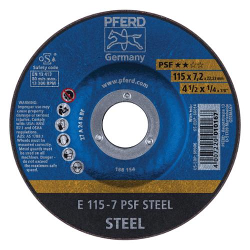 PFERD 60014 Grinding Wheel, 4-1/2" x 1/4 x 5/8-11, PSF STEEL, T27, Aluminum oxide