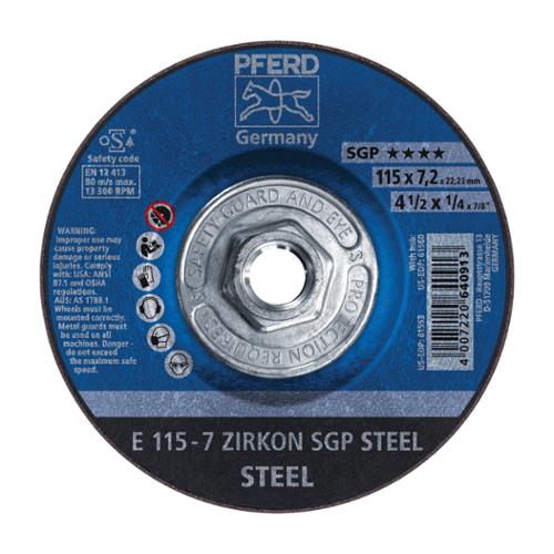 PFERD 61560 Grinding Wheel, 4-1/2" x 1/4 x 5/8-11, SGP ZIRKON STEEL, T27, AO, SiC
