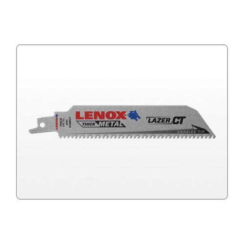 Lenox LAZER CT Reciprocating Saw Blade, Straight Back, 9 in Length, 1 in Width, 0.05 in Thickness, 8, Ground Alternate/V-Tooth Teeth, 1/2 in Tang, Universal/Toothed Edge Tang, Carbide Cutting Edge, Steel Body, Applicable Materials: Cast Iron and Stainless Steel