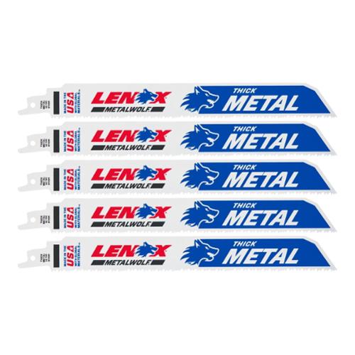 Lenox, 201769110R, Reciprocating Saw Blade, Shatter-Resistant Straight, 9 in Length, 1 in Width, 0.042 in Thickness, 10 TPI, Patented/Reinforced Teeth, 1/2 in Tang, Universal/Toothed Edge Tang, HSS-Co 8 Cutting Edge, Bright, Applicable Materials: Black Pipe, Rebar and Steel Rod