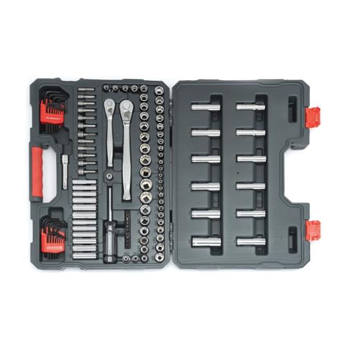 Crescent Mechanics Tool Set, 1/4 in and 3/8 in Drive, 6 and 12-Point, 121 Piece, Blow Molded Case Tool Storage, Specifications Met: ANSI/ASME Specified, Alloy Steel, Polished Chrome
