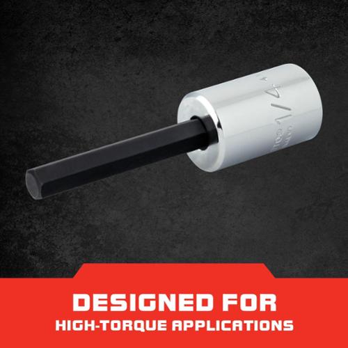 Proto Socket Driver Bit, Standard Length, Measurement System: Imperial, 3/8 in Drive, Hex Bit, 1/4 in Bit, 1-5/8 in Bit Length, 2-23/32 in Overall Length, Specifications Met: Federal GGG-W-641Ex, Alloy Steel, Polished Chrome