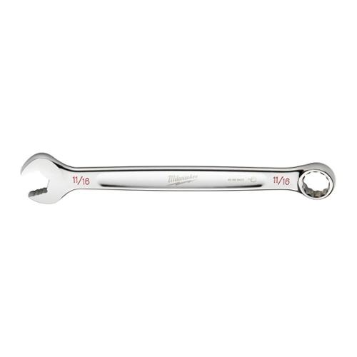 Milwaukee Combination Wrench, Standard Length, Measurement System: Imperial, Open End Wrench, 11/16 in Wrench Opening, 12 Points, 8.86 in Overall Length, 15 deg Offset, Ergonomic Handle, Steel