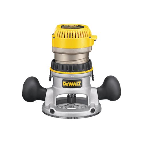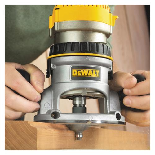 DeWALT Electric Router, Corded Fixed Base Heavy Duty, 1/4 in, 1/2 in Chuck, 24500 rpm Speed, 1-3/4 hp, 120 VAC, 11 A, Die Cast Aluminum Housing Material, Overmold Rubber Grip Handle, Black/Silver/Yellow, Grounded Cord, Dust Sealed/Toggle Switch