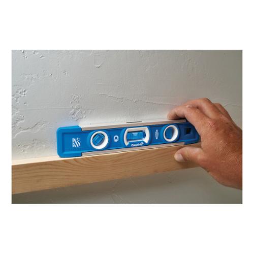 Empire True Blue Torpedo Level, Heavy Duty Magnetic, Series: EM81, 0.0005 in Accuracy, 9 in Length, 2.938 in Width, 5/8 in Height, 3 Vials, Vial Positions: (1) Level/(1) 45 deg/(1) Plumb, Top Read Vial, Aluminum, Anodized, Silver